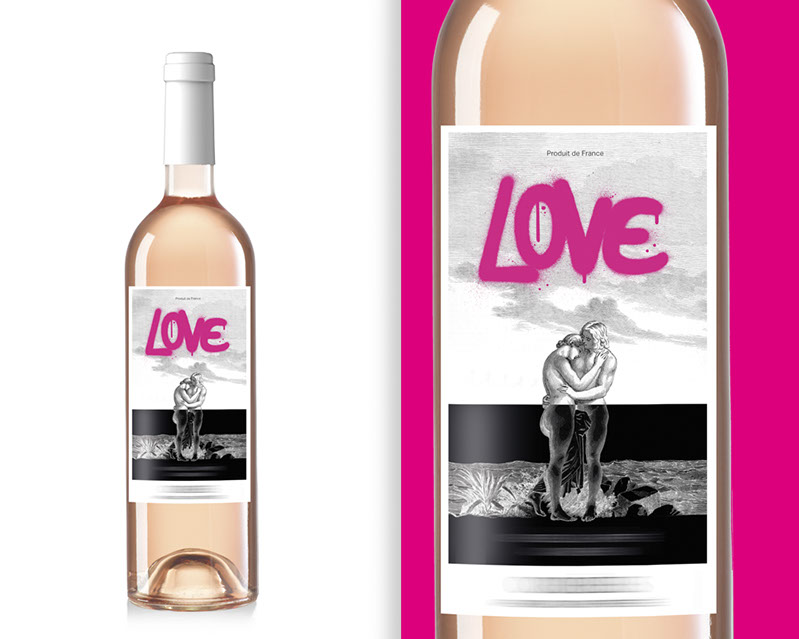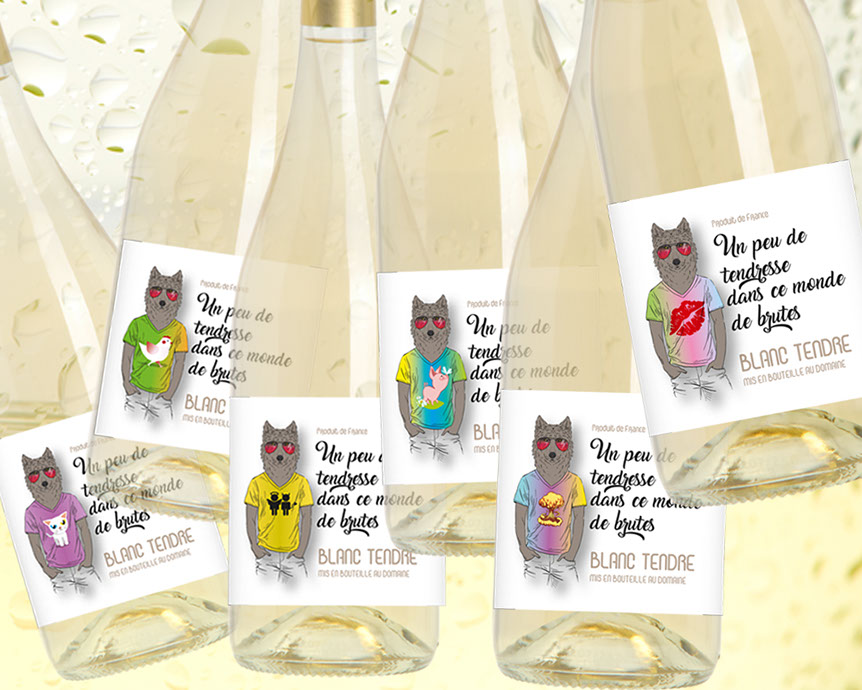 Création packaging “Un peu de tendresse...“ Six habillages différents pour le même vin.