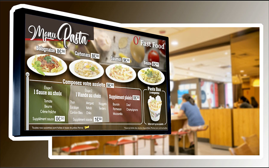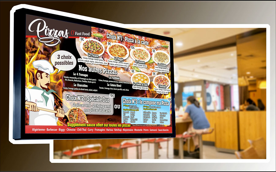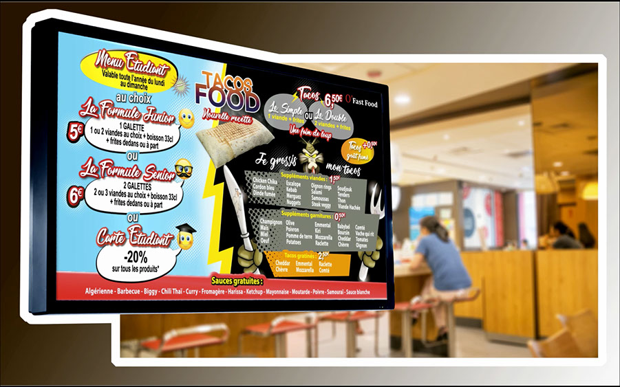 Créations menus board TV O'Fast Food pour l'agence Publo