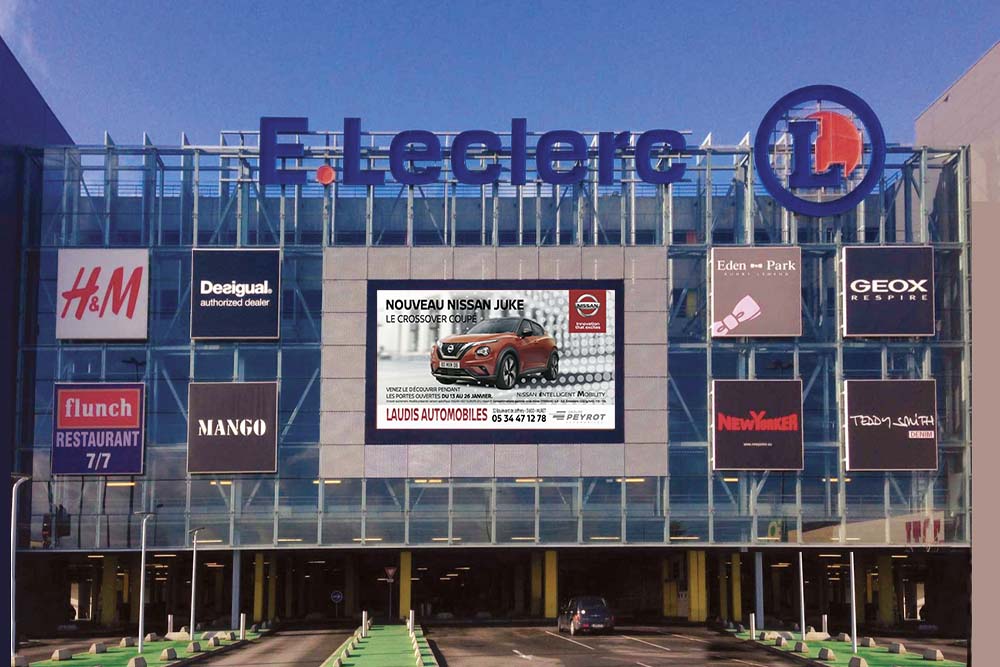 Création animation “Nissan Juke“ pour écran digital, hypermarché E.Leclerc pour l'Agence La Dépêche